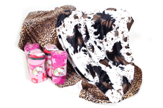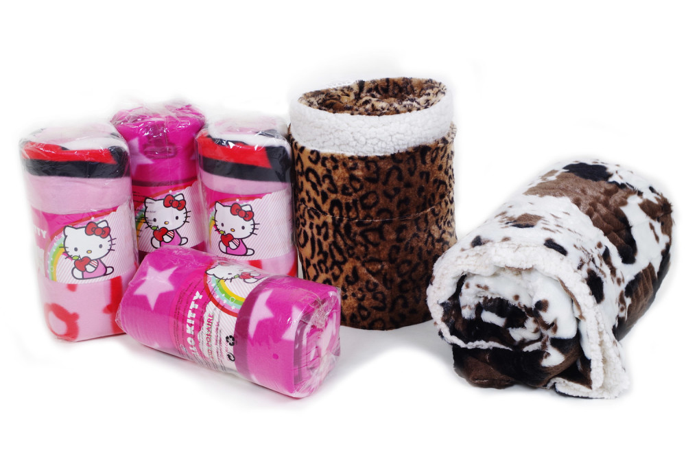 Plaid in vello ecologico disponibile in due fantasie animalier e plaid per bimbo/a Hello Kitty in colorate fantasie