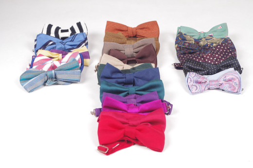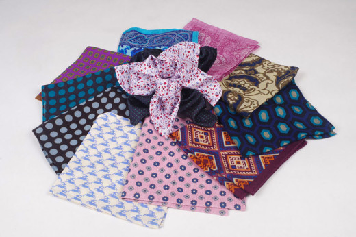 Pochette da taschino e papillon in seta, maglia di seta, cotone o lana a tinta unita o fantasie multicolori (H. Boss, C. Herrera,