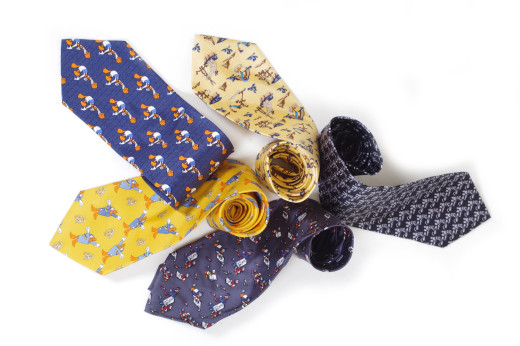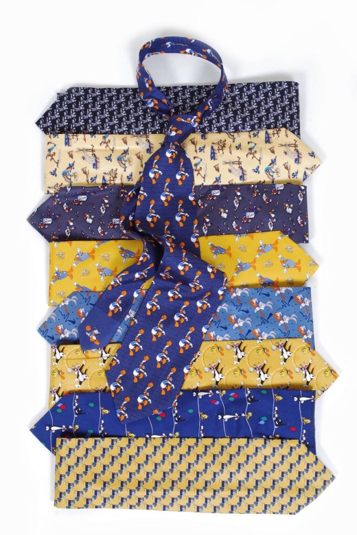 Cravatte in pura seta di varie firme (1°CLASSE, C. Herrera, E. Coveri, Piquadro, Corneliani) …. in particolare Warner Bross, Disney e Loney Tunes