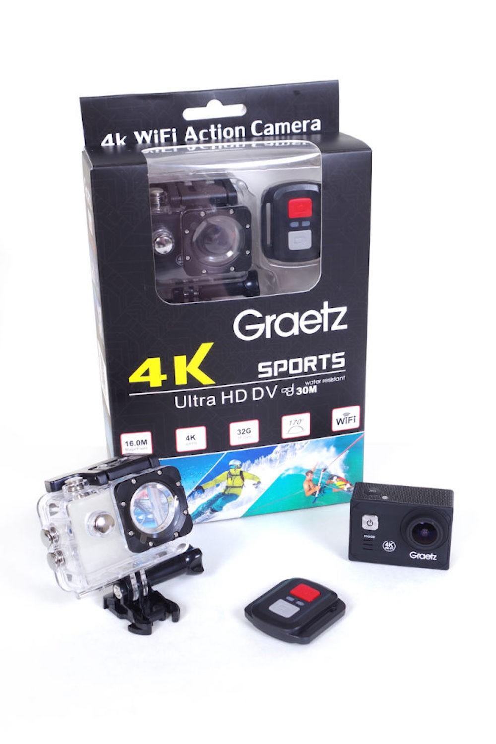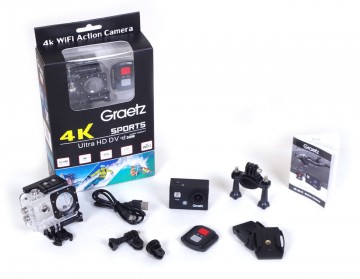 GRAETZ ACTION CAMERA SPORT ULTRA HD €95 €49 : fotocamera ultra HD DV che permette di immortalare le tue avventure registrando ogni momento in 4K. Caratteristiche : lente grandangolo di 170 gradi Connessione Wi-Fi e compatibile con dispositivi iOS e Android Modalità di scatto: normale, automatica e movimento sportivo Modalità di ripresa video: normale, time-lapse e slow motion Accessori: custodia impermeabile fino a profondità di -30 metri, Sim Card da 32 gb, cavo di alimentazione USB. telecomando per scattare foto in lontananza, supporto per bicicletta, supporto per casco e viti per ancorare la fotocamera Modalità d’uso: sport estremi, attività e sport all’aperto e immersioni