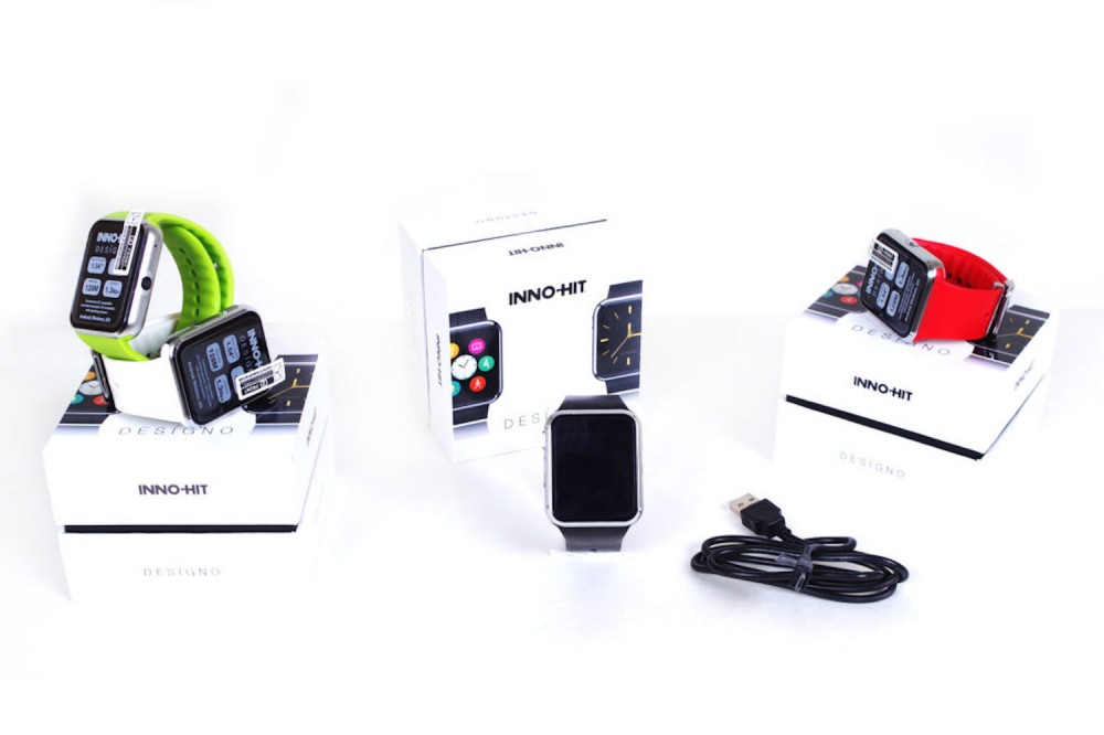 Orologio INNO-HIT €75 €45 : smartwatch con cinturino nei colori bianco, nero, verde e rosso con funzioni : connessione Bluetooth, chiamata/sms, rubrica, registro chiamate, pedometro per calcolare le calorie consumate durante l’esercizio in base al numero dei passi, distanza e durata Monitoraggio del sonno il quale consente di controllare la qualità del sonno in base alle ore dormite Funzioni promemoria, calendario/appuntamenti, calcolatrice, sveglia e riproduttore audio, registro audio e cronometro Connessione Bluetooth compatibile con tutti gli Smartphone Requisiti per la compatibilità totale delle funzioni: iOS (da 7.0), Android (da 4.4) e Microsoft (connessione Bluetooth).