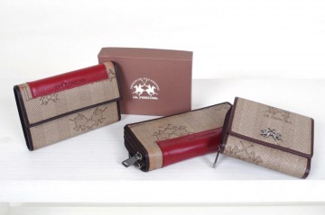 Portafogli firmati La Martina realizzati in pelle o tessuto tecnico disponibili in vari modelli e dimensioni : a un vano o doppio vano con porta monete, porta banconote, porta carte e documenti da € 32 a € 45