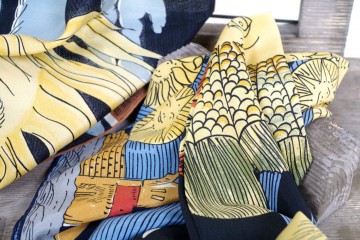 Pochette Fornasetti in pura seta : da taschino o girocollo disponibili in disegno e fantasia diversi (sole, girasole, pera, …) € 25