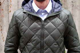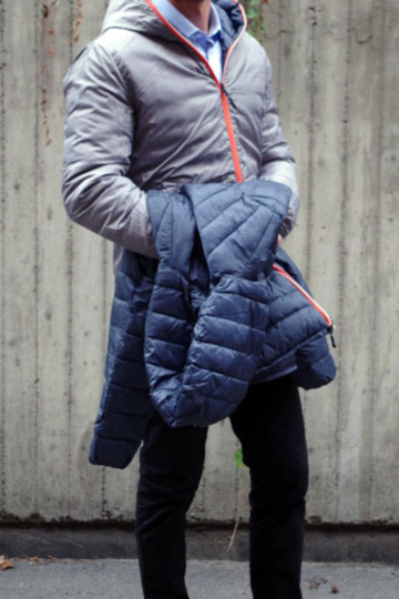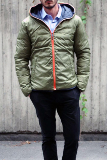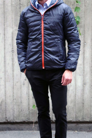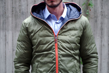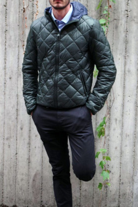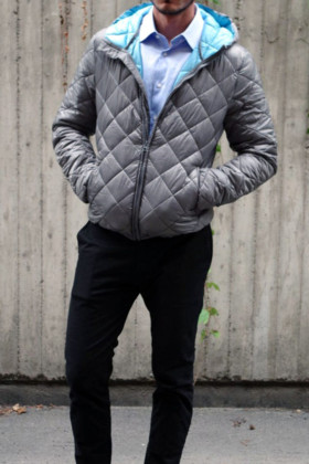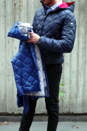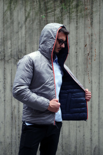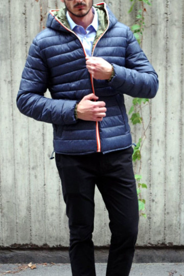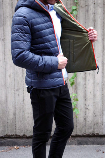 Giubbotto in tessuto shell mat tinto a freddo (blu melange reversibile in verde salvia, blu melange reversibile blu, blu melange reversibile grigio) con zip a contrasto Imbottitura orizzontale e taglio regular dalla tg M alla tg 2XL