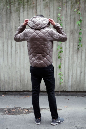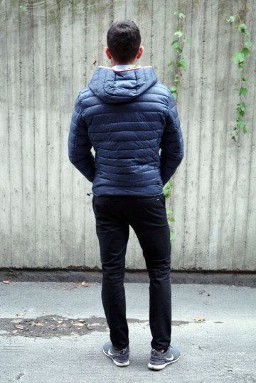 Bomber in tessuto shell tinta unita con contrasto nella fodera del cappuccio (blu/grigio nero/grigio verde bottiglia/blu grigio chiaro/azzurro bluette/grigio prugna/grigio verde chiaro/grigio) Imbottitura orizzontale e taglio slim