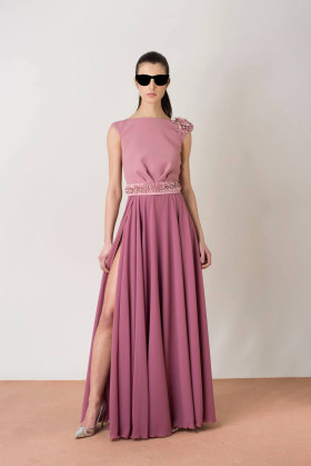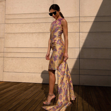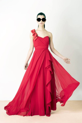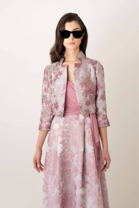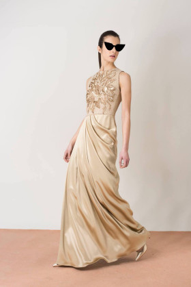 Abiti lunghi, abiti corti, soprabiti e spolverini, giacche, stole, bluse, top a fascia, pantaloni, longuette e tubini vengono realizzati con tessuti pregiati impreziositi da dettagli mai scontati, da ricami in pietre naturali e ricami in filati innovativi e curati in ogni minimo particolare L’organza dai toni pastello viene abbinata ai doppiati in crepe, broccati, chiffon, georgette, duchesse, cady, enver satin, voile, taffetas, shantung mikado, seta