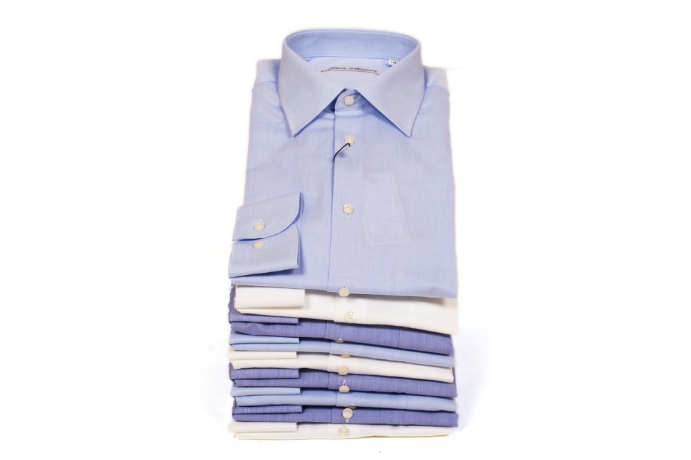 Riassortimento di Camicie Neoclassiche asseriate dalla tg 38 alla tg 44 Un’ importante scelta di colli applicati su tre vestibilità convenzionali: slim, basic e ampia Cotone 100% di sottilissima fibra lunga e doppio cotone ritorto (nei colori bianco ottico, bianco con piccoli rilievi, azzurro tenue, azzurro intenso e azzurro a lievi fantasie tono su tono) e particolari curati con un’esperienza sartoriale centenaria caratterizzano questa collezione di circa tremila capi
