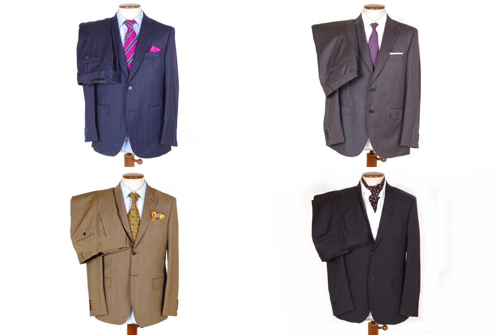 Tinte unite opache e classiche per la mezza sera (nero, antracite, blu scuro, marrone, grigio), lievi gessati millerighe o gessati classici con colori a contrasto, tessuti lucidi e semilucidi in tinta unita (nero, blu notte, blu brillante) o con trame a rilievo tono su tono per gli abiti da cerimonia (articoli a numero ridotto)