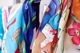 Le sciarpe : confezionate in pura seta per valorizzare il proprio stile con un accessorio pregiato anche nelle stagioni più calde Proposte in varie misure e fantasie colorate (floreali, astratte, animalier, geometriche)