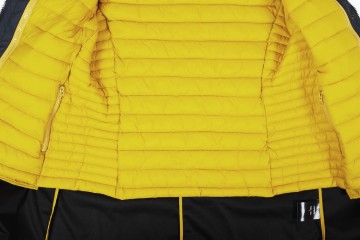 Giubbino corto e lungo con manica a tre quarti e imbottitura orizzontale realizzato in tessuto tecnico e adatto ai primi freddi Taglio a trapezio e collo alto in vari colori e misure