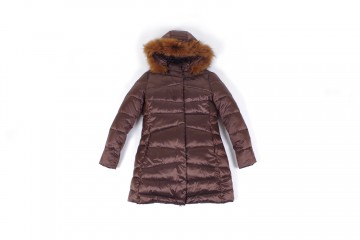 Parka elegante realizzato in tessuto impermeabile lucido o semilucido in bellissimi colori moda (verde ottano, marrone bruciato, nero, rosso) e rifinito con fodera a contrasto e pelo vero tinto Imbottitura in eco-piuma o piuma vera e cappuccio removibile Vari modelli taglie e colori