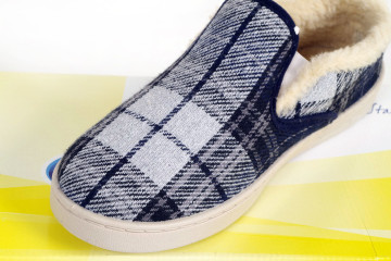 Pancake : textile e microfibra blu multicolor, adatta alle stagioni più fredde è morbidissima ed avvolgente con plantare in Memory Cushion