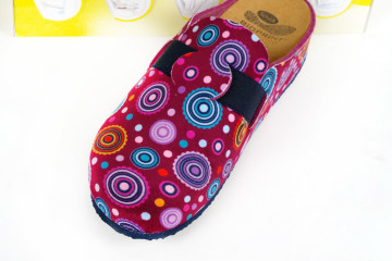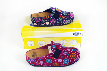 Lareth : microfibra stampata multicolor, simpatica ciabatta sabot coloratissima che grazie al plantare studiato secondo la tecnologia Bioprint favorisce una corretta postura
