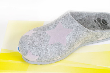 Athes : feltro stampato grey e rosa con tacco h. cm 1,5 e plantare rivestito in feltro, suola in gomma antiscivolo