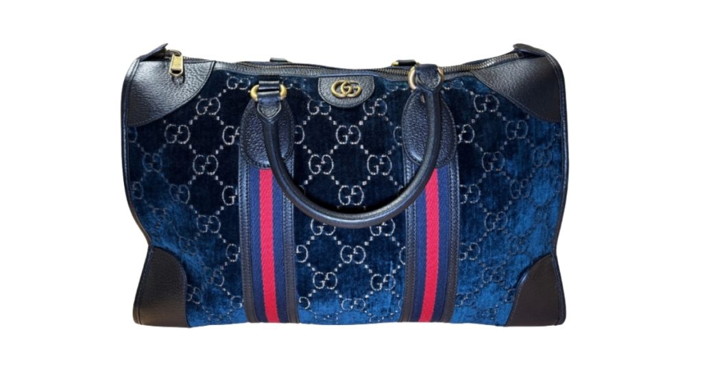 Borsa da viaggio in velluto GG monogram in pelle di vitello web testurizzata ottanio