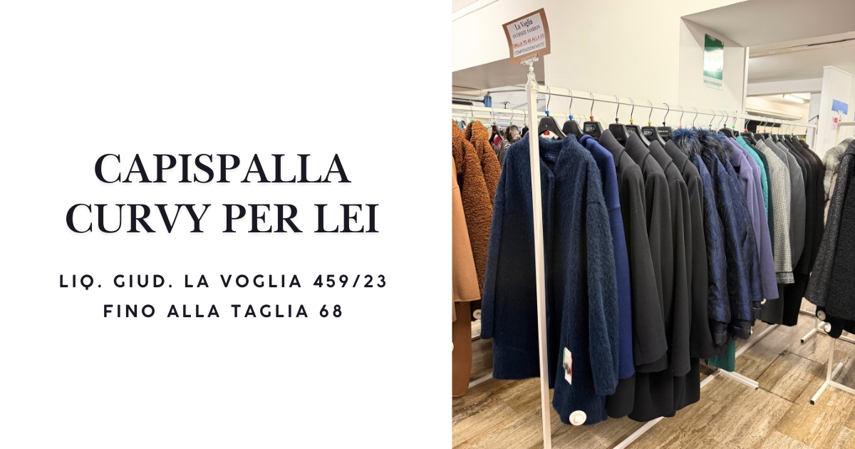 Dalla taglia 46 alla taglia 68 (alcuni pezzi unici non assortiti)