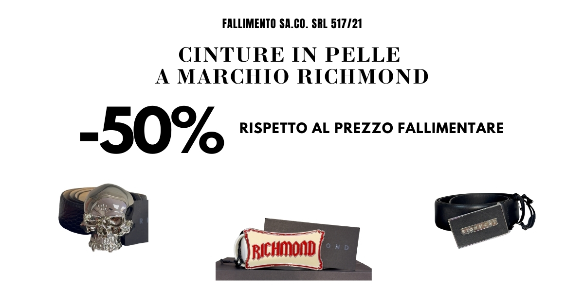 15Gen26Cinture Fall. SA.CO. SRL 517/21: CINTURE A MARCHIO RICHMOND Cinture in pelle a marchio Richmond per lui e per leiDa € 40 a € 150 (scontate del 50% rispetto al prezzo fallimentare) Tweet