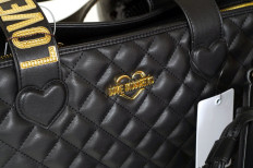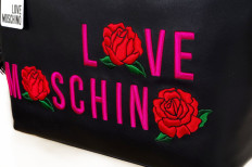 Moschino : borse in ecopelle mat, ecopelle trapuntata, pvc finitura vernice con stampa del logo in rilievo Finiture dorate, peltro e nere e ricami colorati tipici delle collezioni firmate Moschino