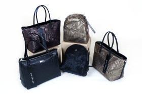 Richmond : borse e zaini in morbidissima ecopelle o tessuto brilliant ricamato light gold, gun metal e nero Collezione Star