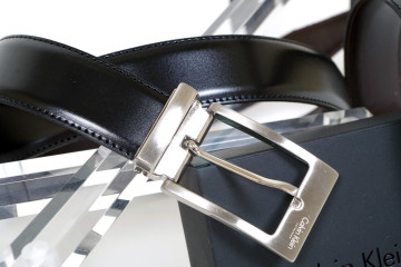 Nuovo lotto di cinture da uomo firmate Calvin Klein Cinque differenti fibbie che caratterizzano una cintura in pelle nera che, reversibile, diventa pelle testa di moro