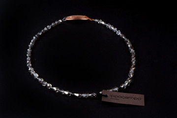 Chicche collana in argento con elementi galvanizzati in oro rosa e 3 cristalli di rocca € 169 in vendita a € 45