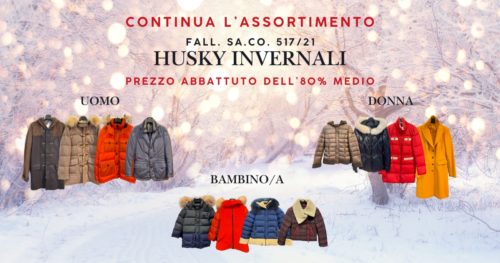 Continua l’assortimento di giubbotteria Husky invernale vestibilità slim fit: – per lui: taglie dalla 46 alla 60 (prevalentemente capi di taglia 48 e 50)– per lei: taglie dalla 38 alla 54– per bambino/a: da 2 a 14 anni Read more