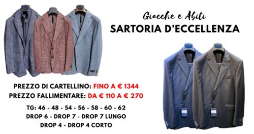 NUOVI ARRIVI E’ INIZIATA LA VENDITA I capi verranno assortiti di settimana in settimana. Primi capi disponibili:– giacche classiche– giacche cerimonia e da sera– camicie neoclassiche– camicie casual– abiti– maglieria in seta-cotone, seta cashmere e 100% cashmere PREZZI MAGLIERIA in seta-cotone, seta-cashmere e 100% cashmerePrezzi fallimentari: € 70 – € 80 – € 90 – […] Read more